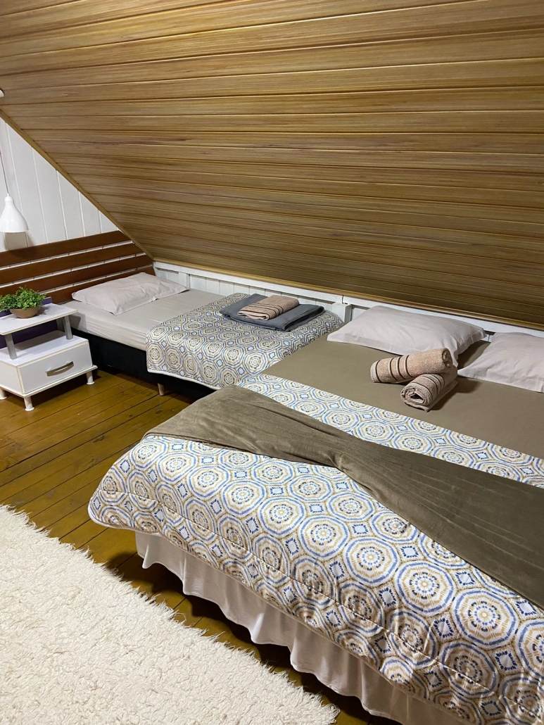 O Chalé do Lago oferece conforto e tranquilidade em meio à natureza. Ideal para famílias ou grupos, dispõe de quartos bem equipados para atender diferentes necessidades: há opções com duas camas de solteiro, uma cama de solteiro e uma de casal, e quartos com cama de casal.